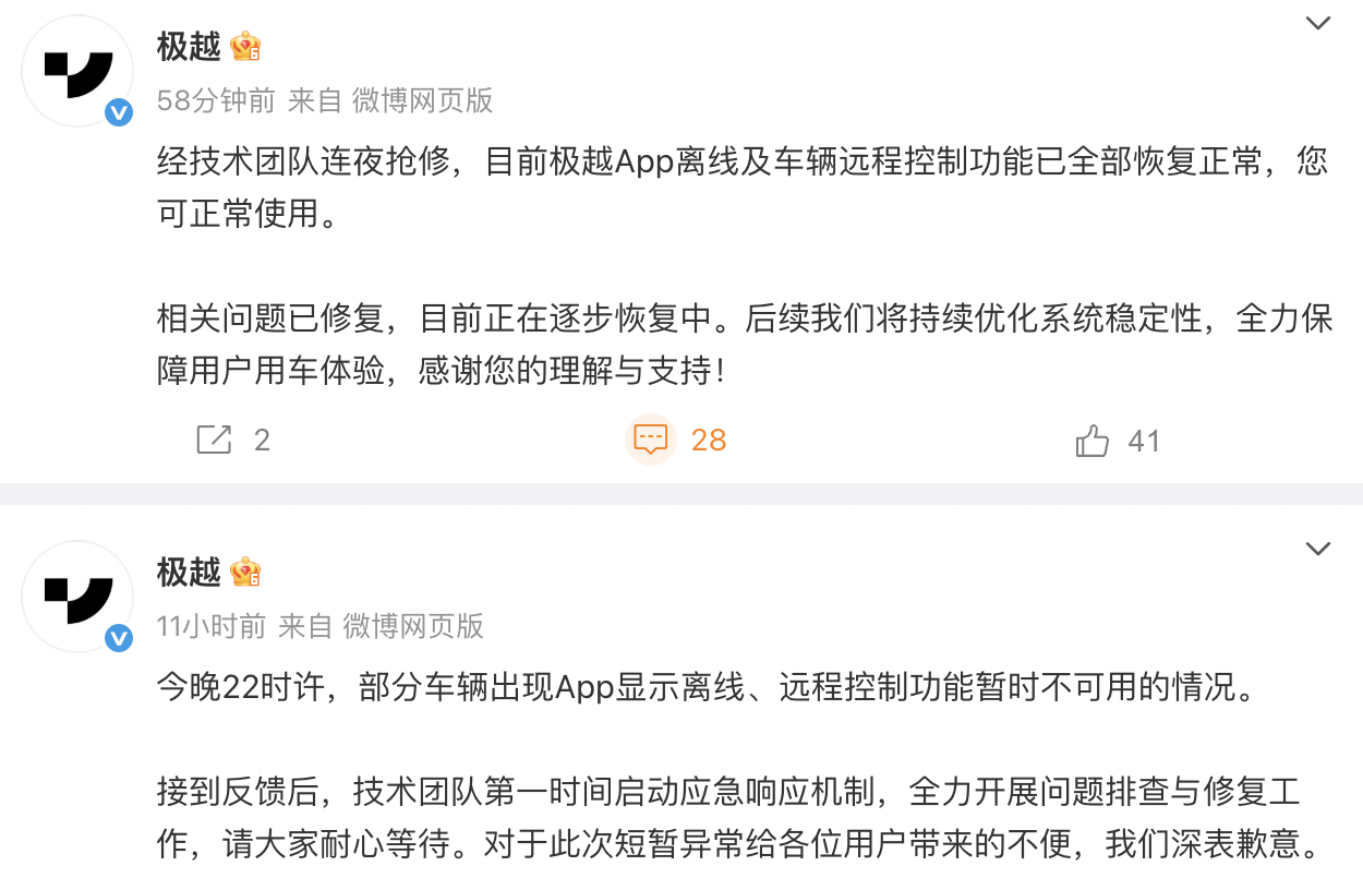 事实上,类似的情况在利宝汽车已经不是第一次发生。今年7月,有车主反映,吉悦Vehicle app断开连接,遥控功能无法正常使用,蓝牙钥匙无法使用。当时,极岳CEO夏一平发表声明称,经团队紧急抢修,涉事车辆已恢复正常。